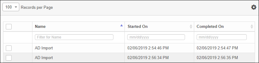1. | In the navigation pane, select Discovery Scan > AD User Import Logs. The AD User Import Logs window displays. |