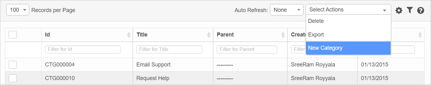 | 1. | From the Select Actions drop-down list, choose New Category. The New Category window displays. |