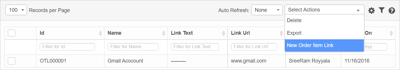 | 1. | From the Select Actions drop-down list, choose New Order Item Link. |